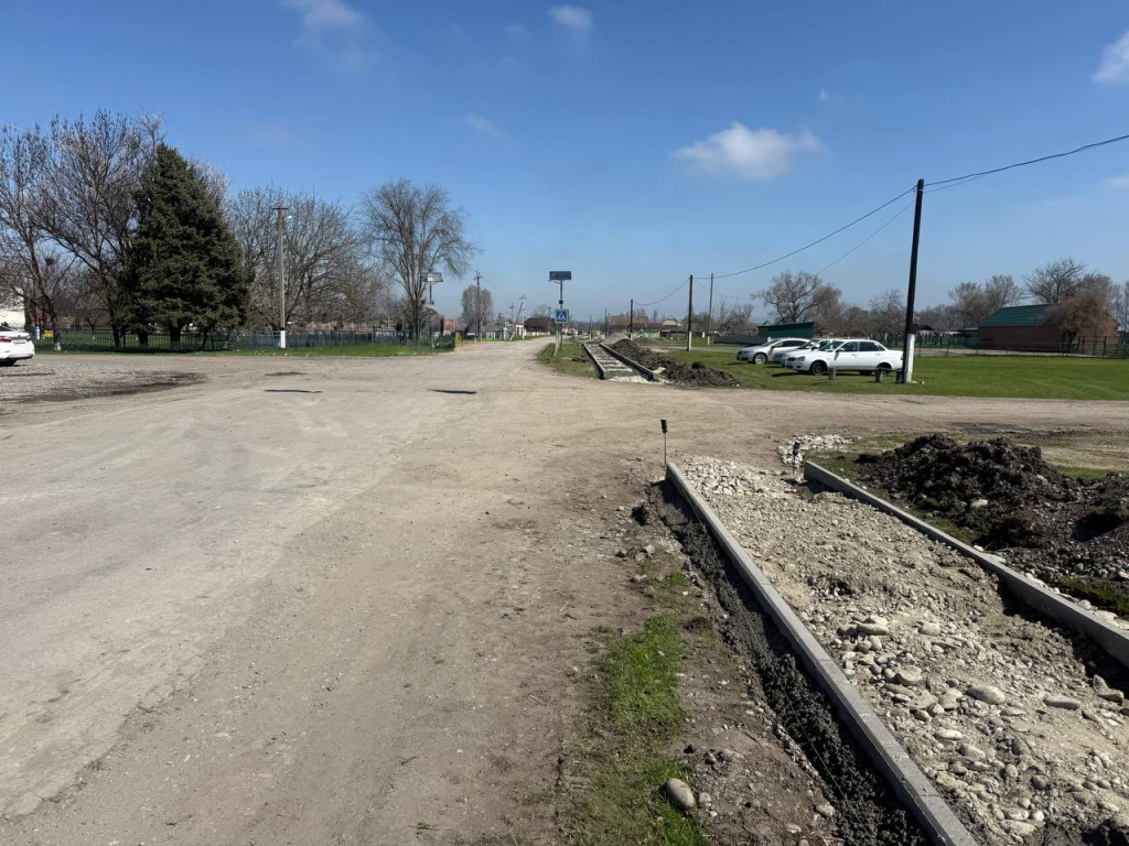 Сейчас на объекте уже приступили к устройству основания и установке бортовых камней для тротуаров. Параллельно на площадку завозят инертные материалы для последующих этапов.