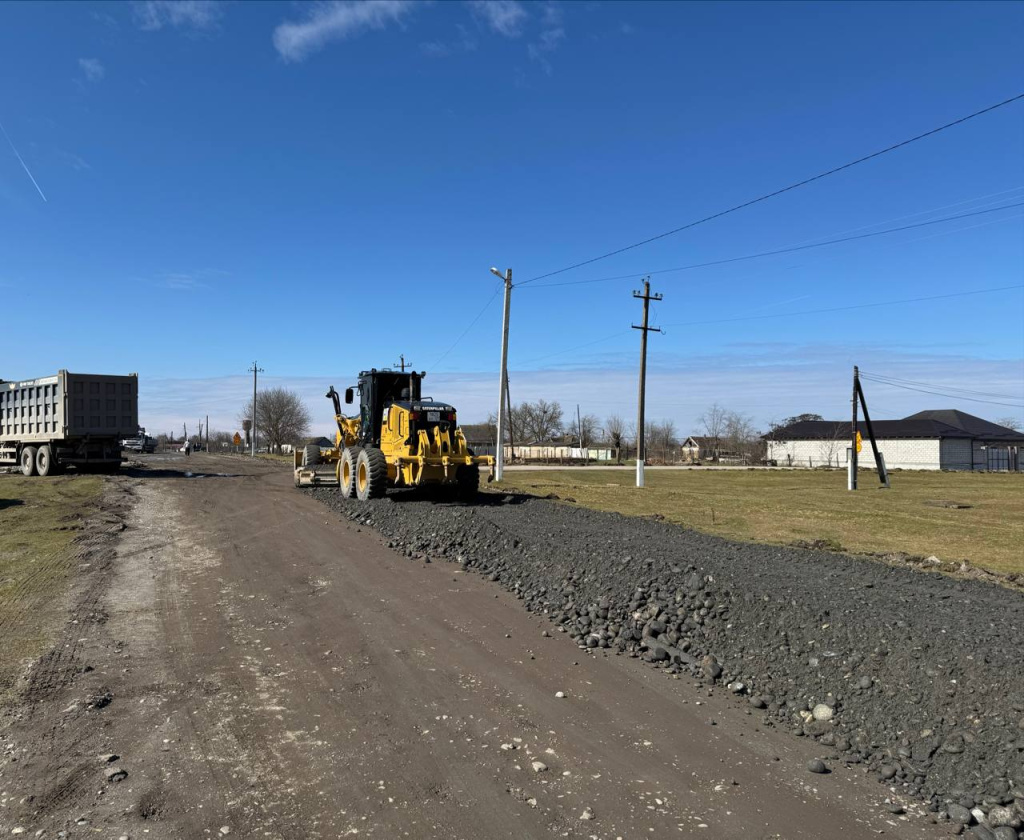 В селении Хамидие ведутся активные работы по обновлению дорожной инфраструктуры. Общая длина ремонтируемых участков достигает 4,9 километра.